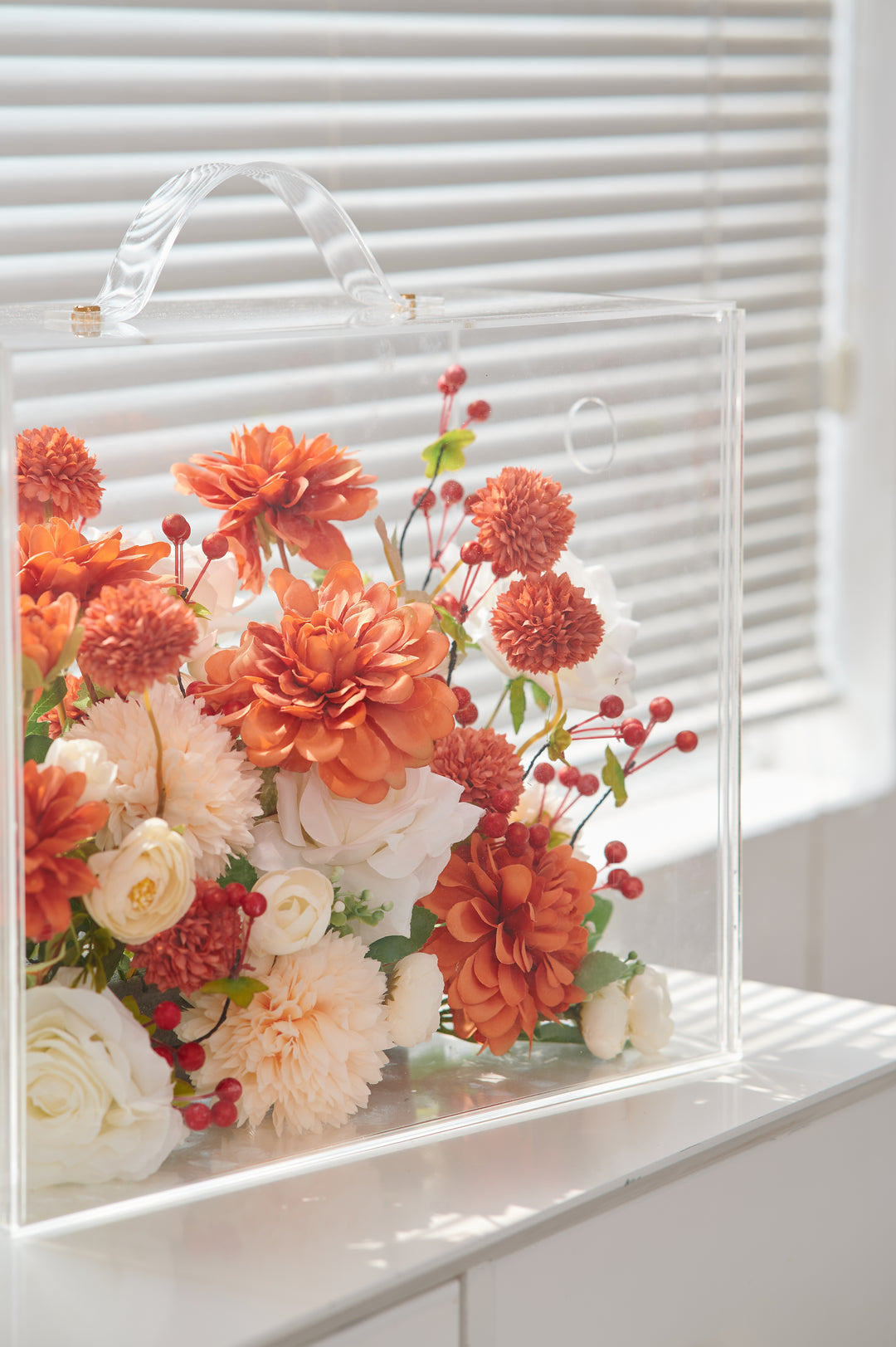 Artificial Flowers Mix Lush Orange & Cream Floral Mica Box | Daisy Florist