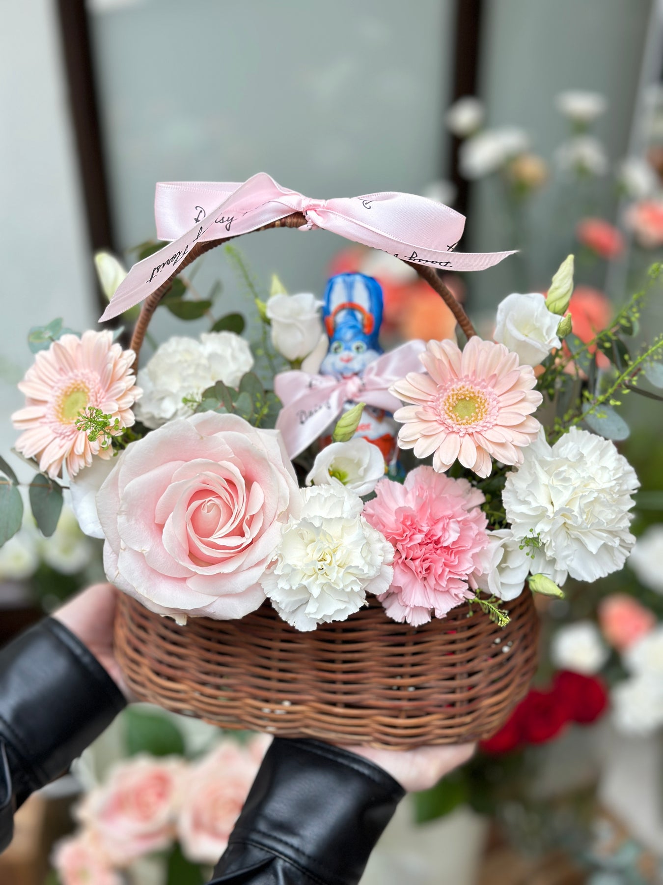 Fresh Flower Present Box with Chocolate Bunny for Easter - Ideal Springtime Surprise