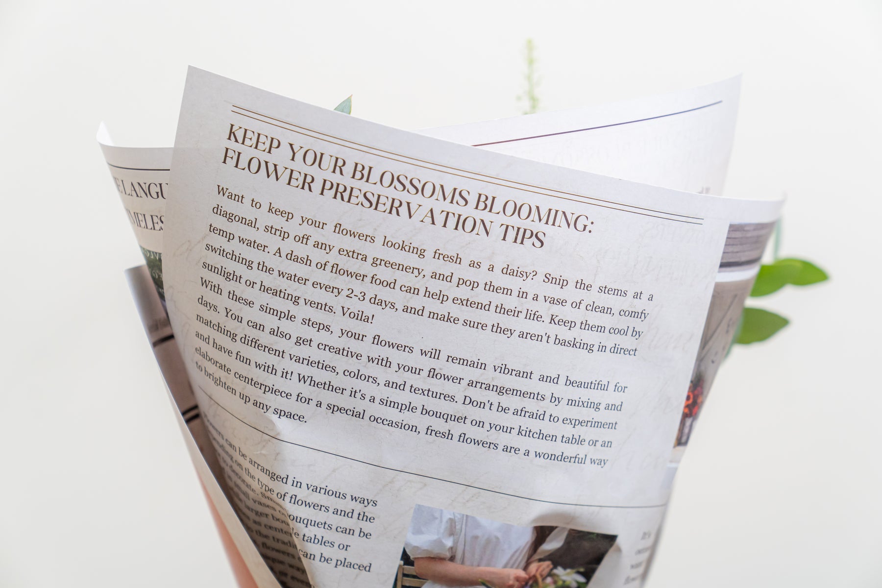 • We wrap the bottom of every bouquet with water to keep your flowers fresh for a few days, even without a vase.