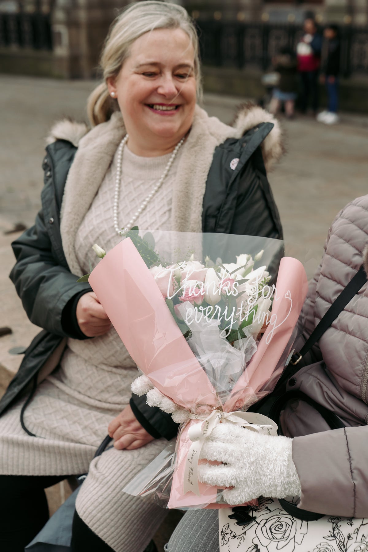 In this exquisite ensemble, the warmth of pink blossoms symbolises a gentle embrace, while the purity of white flowers whispers of innocence and deep admiration. Each bloom is carefully chosen to create a harmonious balance, crafting an arrangement that's both visually stunning and emotionally resonant.