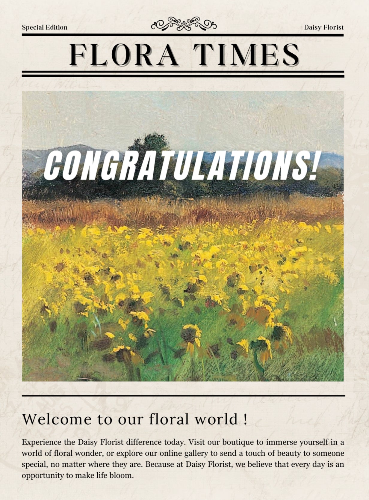 Thank you for choosing Daisy Florist. We’re delighted to help you make someone’s day special.